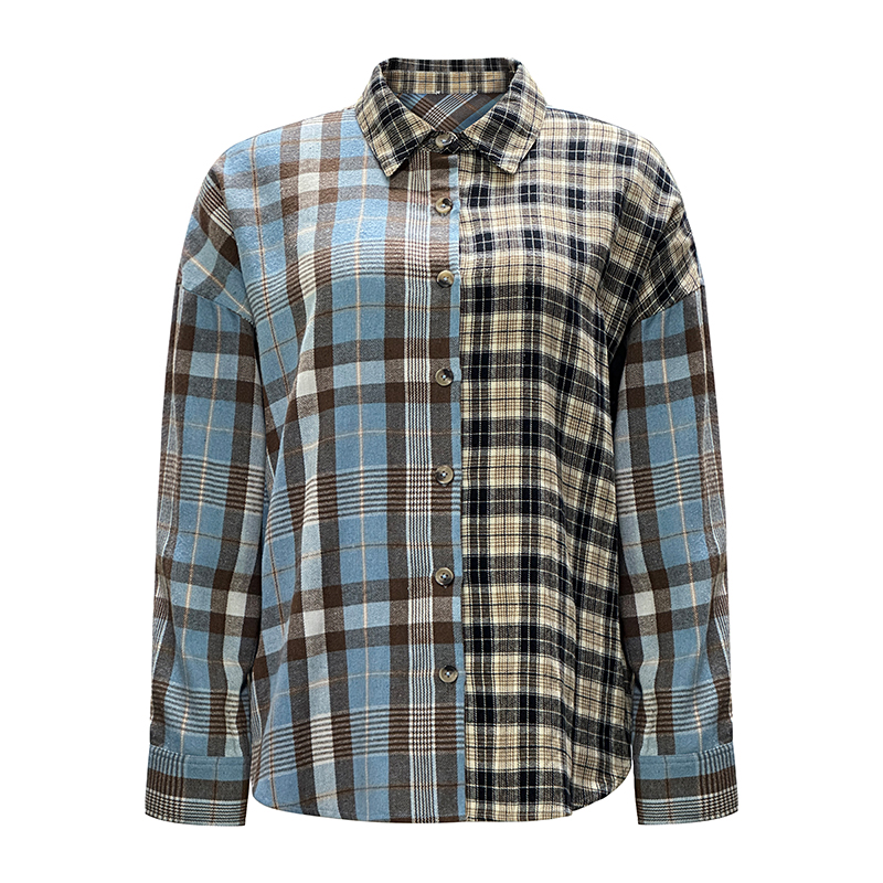 You are here: Home / Products / Woman / Tops / American Retro Plaid Splicing Spring And Autumn Models Loose Classic Versatile Long-sleeved Shirt