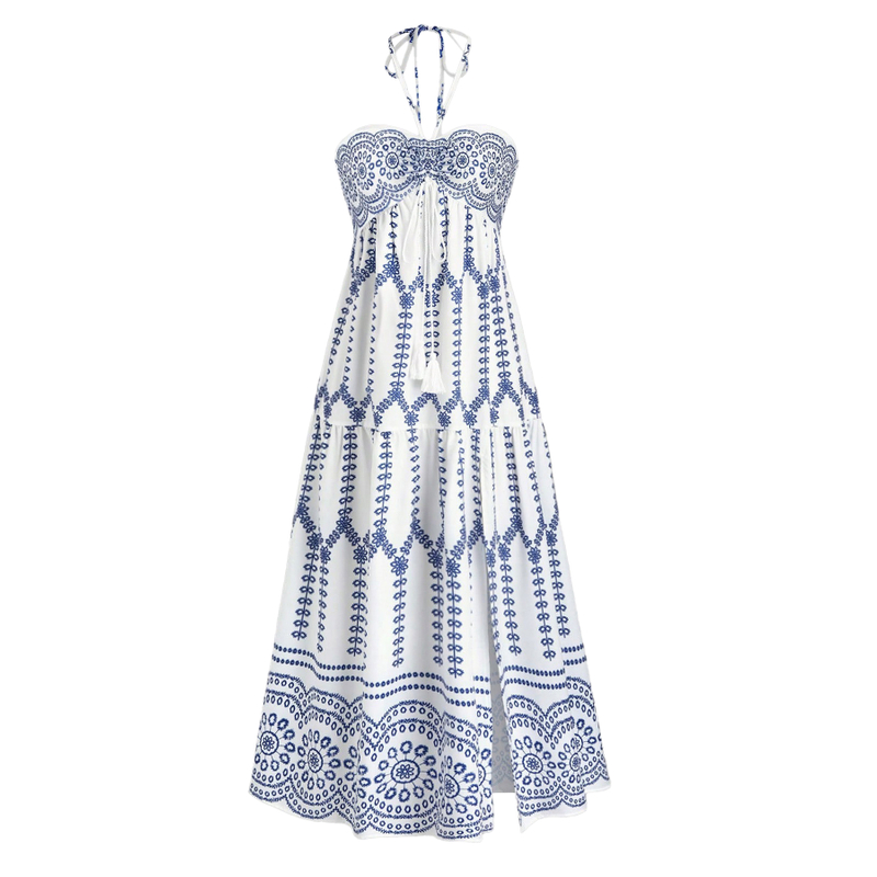Bohemian Women's Summer Fashion Split Sexy Printed Tie Breasted Dresses