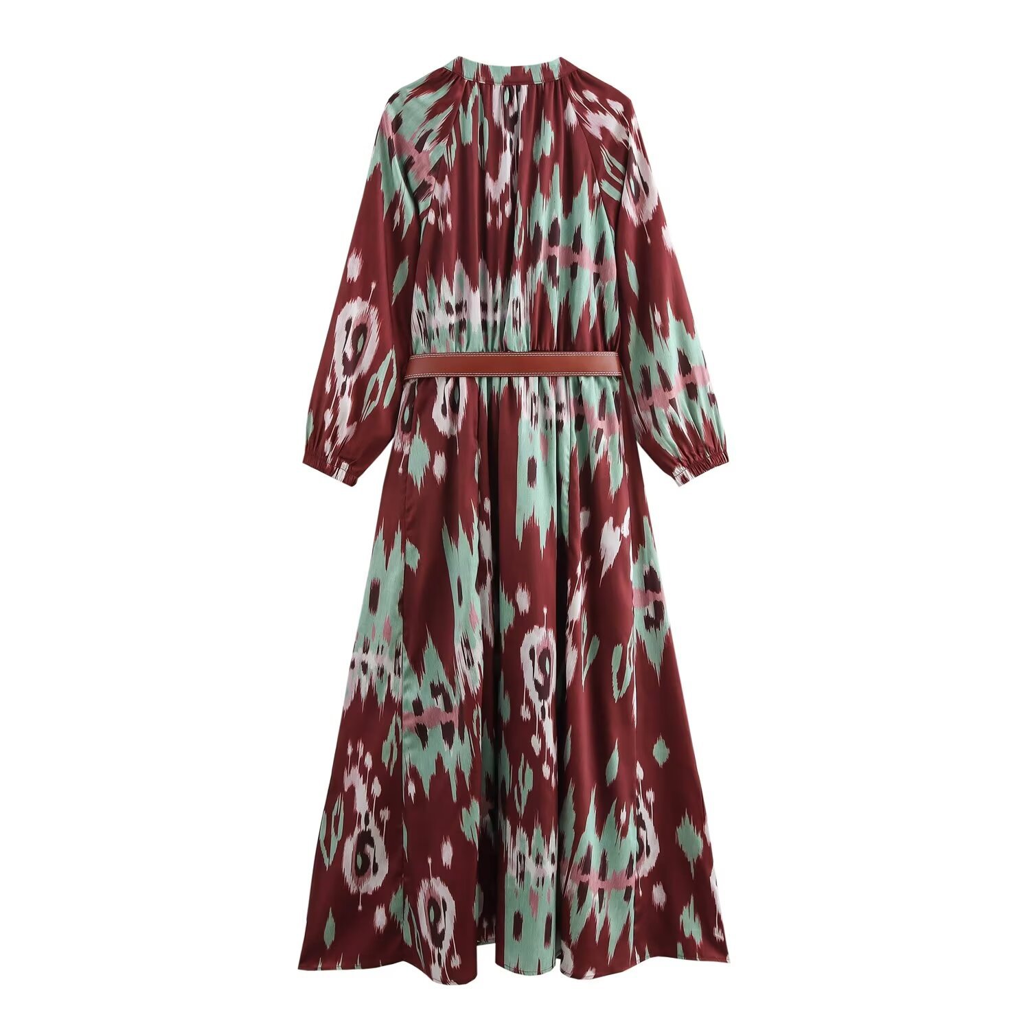 You are here: Home / Products / Woman / Dress / Europe And The United States Temperament Fashion V-neck Long-sleeved Printed Waist Long Dress Female