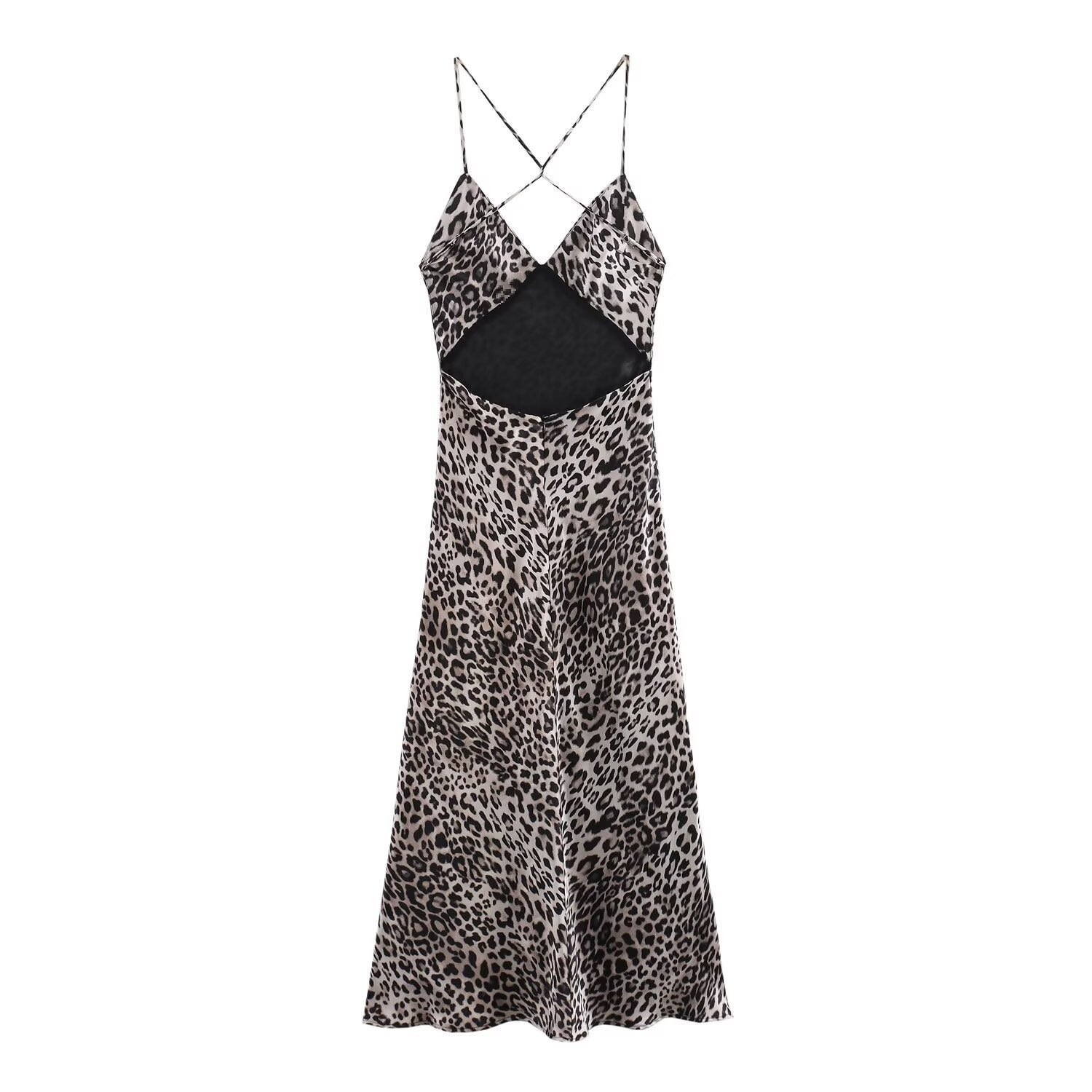 You are here:Home / Products / Woman / Dress / Europe And The United States Wind New Women's Fall Satin Texture Leopard Print V-neck Backless Halter Dresses