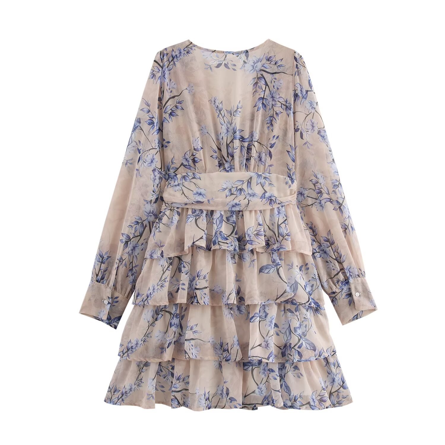 You are here:Home / Products / Woman / Dress / Europe And The United States Wind Women's New Chiffon V-neck Long-sleeved Waisted Stacked Cake Skirt A Word Dress