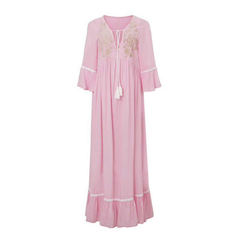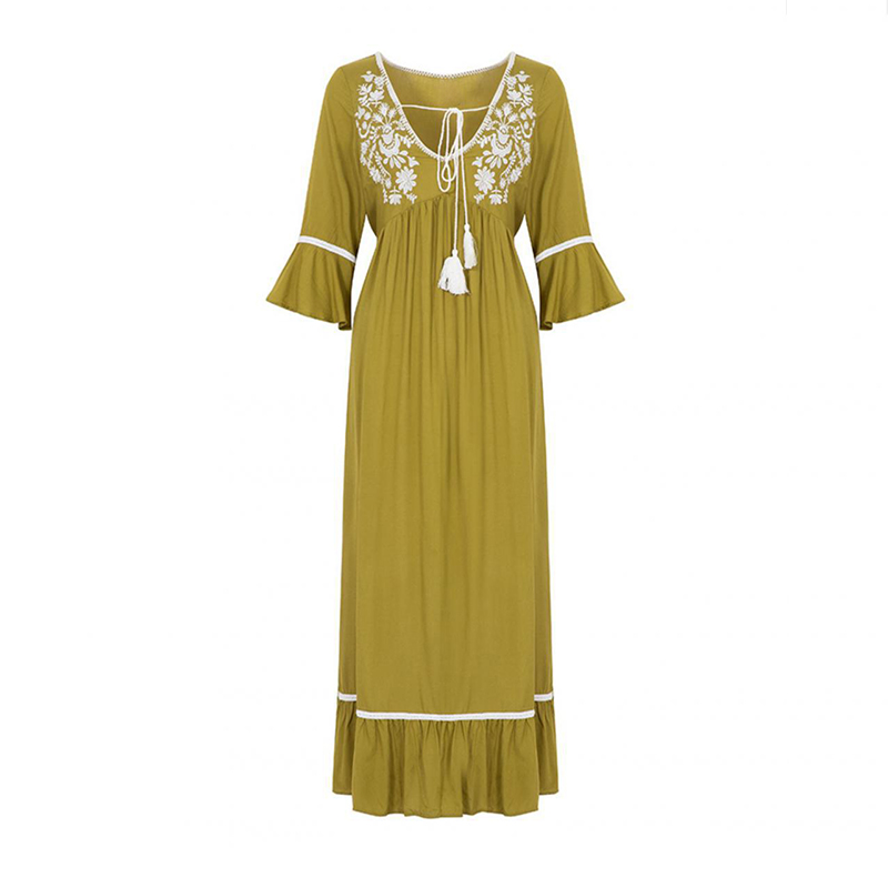 You are here: Home / Products / Woman / Dress / Summer New Fashion Bohemian Style Embroidery Flared Sleeve Personalized Dresses Long Dresses
