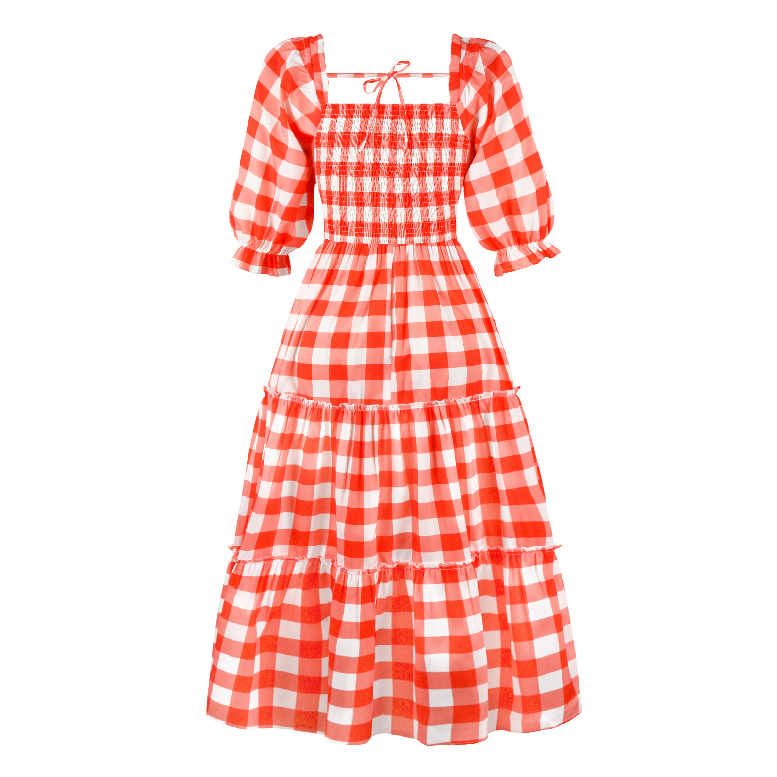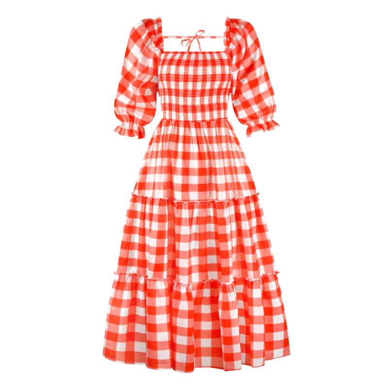 You are here:Home / Products / Woman / Dress / Women's Fashion Digital Printing Temperament Elegant Dress Square Neck French Vacation Ruffle Waisted Hot Long Dresses