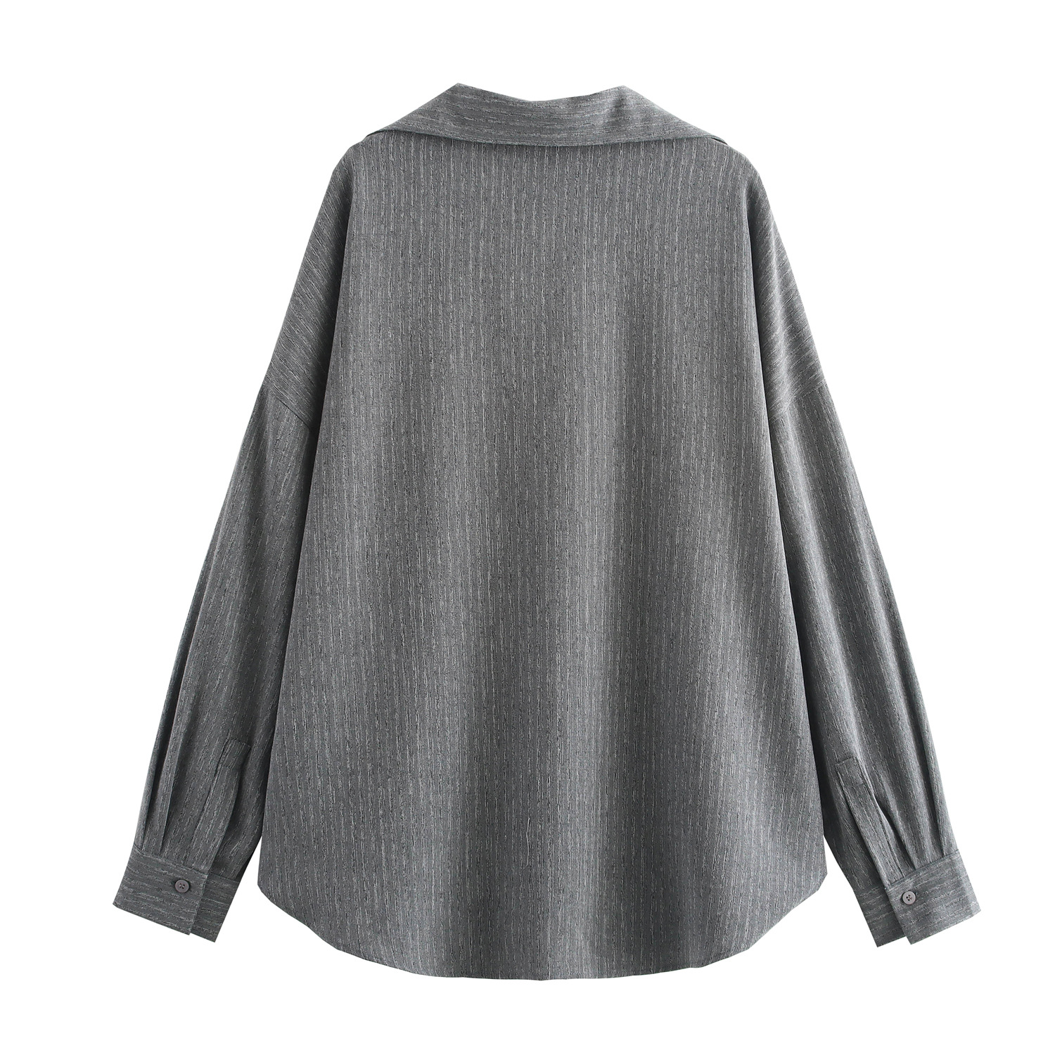 You are here: Home / Products / Woman / Blouse / Women's Fashion Gray Stripe Polo Collar Long Sleeve Shirt