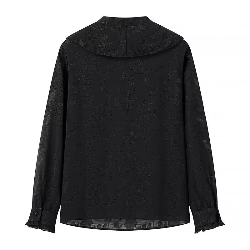 You are here: Home / Products / Woman / Blouse / Women's Fashion Jacquard Solid Color Round Neck Long Sleeve Loose Casual Shirt