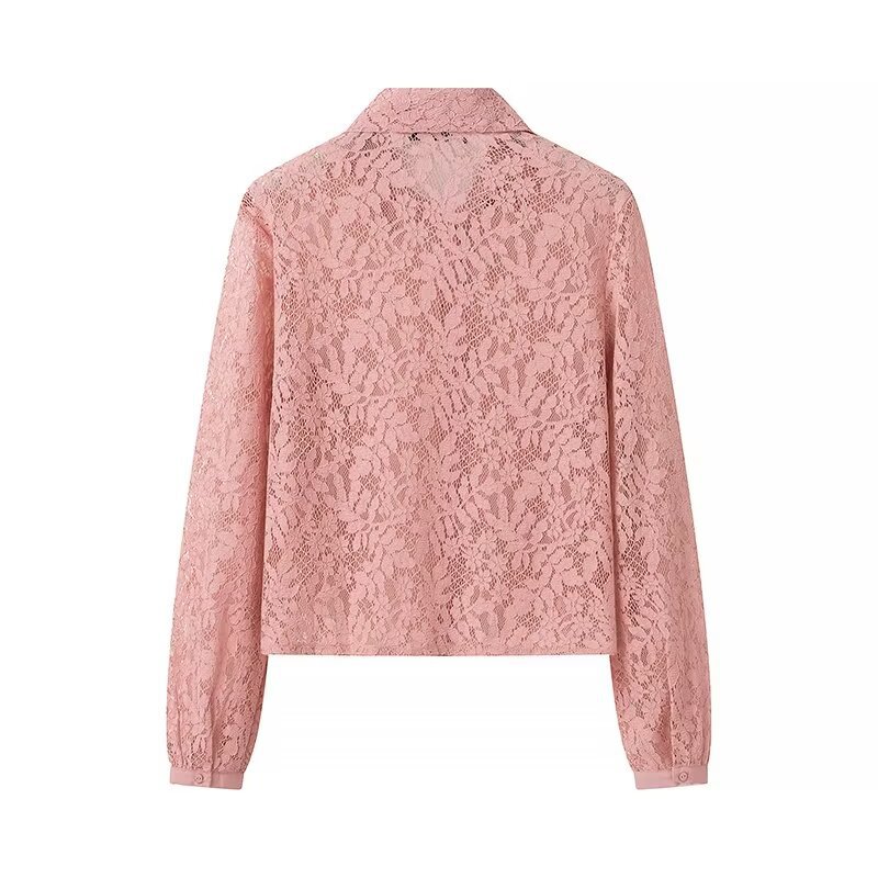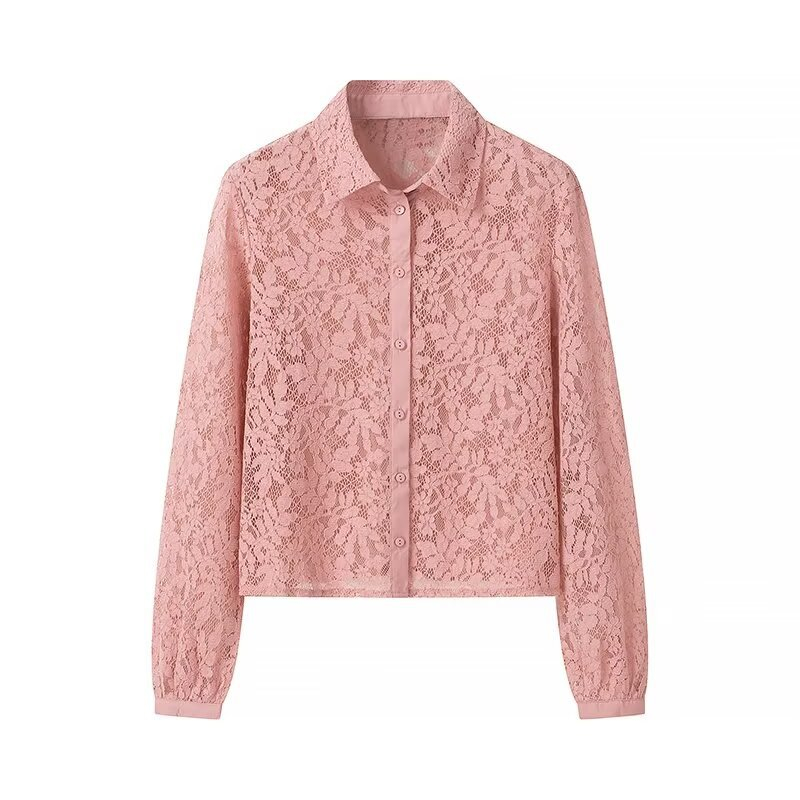 You are here: Home / Products / Woman / Blouse / Women's Fashion Simple Versatile Temperament Lapel Long-sleeved Lace Shirt