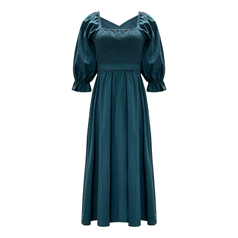 You are here:Home / Products / Woman / Dress / Women's Fashion Solid Color Dress Temperament Square Neck Flare Sleeve Tie Front And Back Mid-Length Dresses