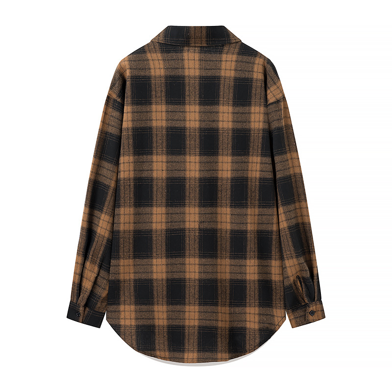 You are here: Home / Products / Woman / Blouse / Women's Retro Plaid Long Sleeve Shirt Loose Casual Single Breasted Shirt