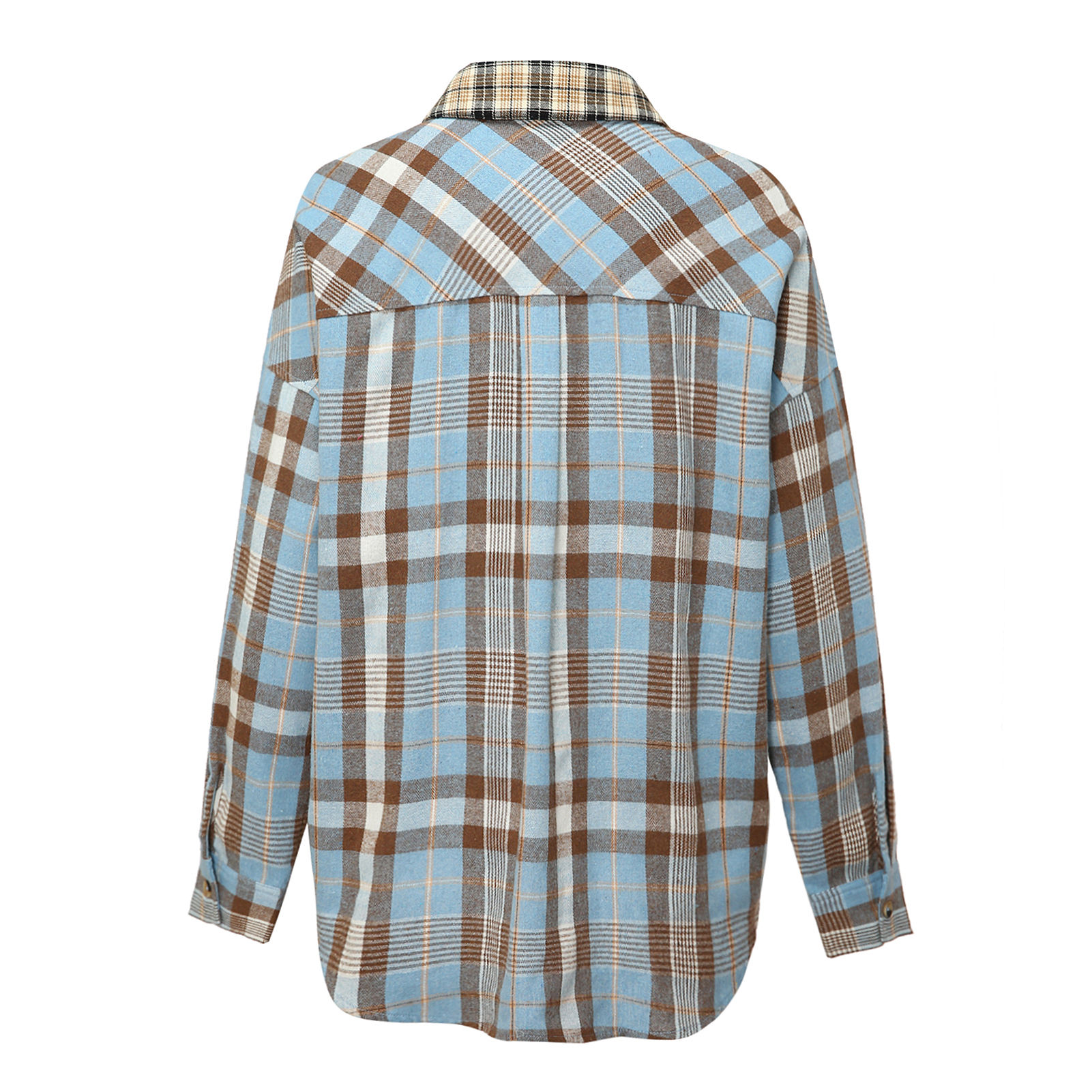 You are here: Home / Products / Woman / Blouse / Women's Round Collar Plaid Long Sleeve Shirt