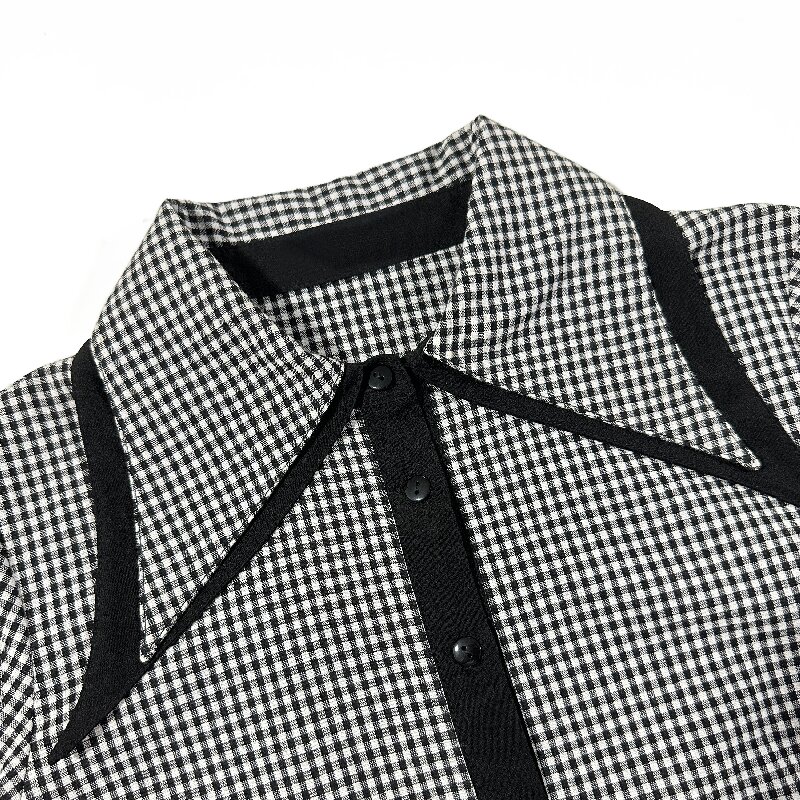 You are here: Home / Products / Woman / Blouse / Black and White Checkered Shirt | Women's Slim-Fit Long Sleeve Fashion Blouse