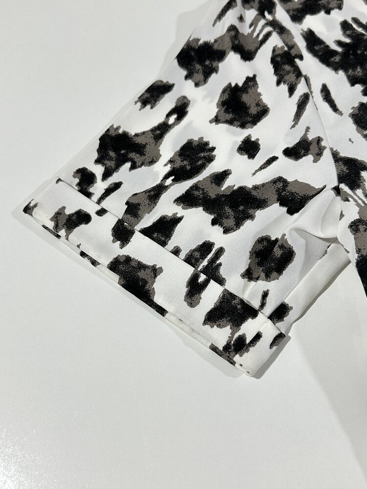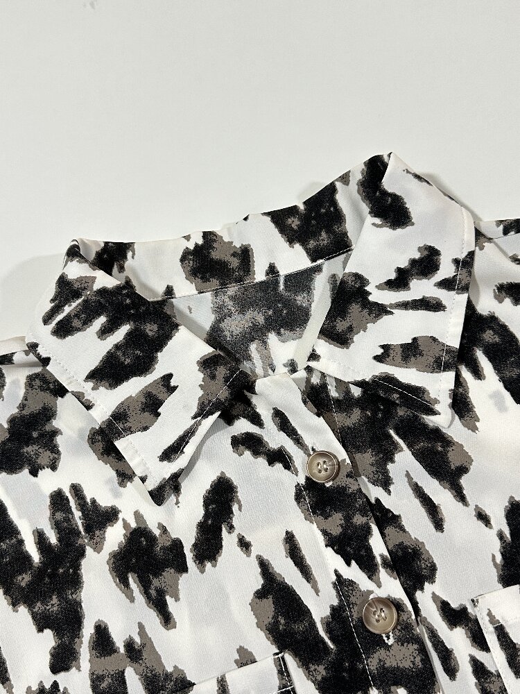 You are here: Home / Products / Woman / Dress / Black and White Cow Print Shirt Dress | Women's Short Sleeve Chic Casual Dress