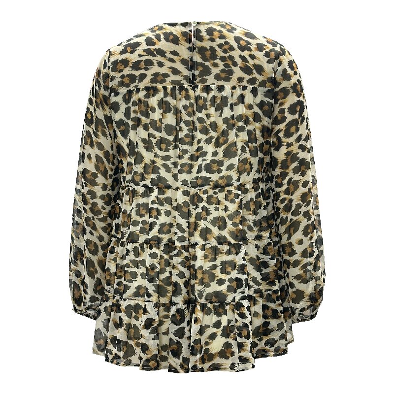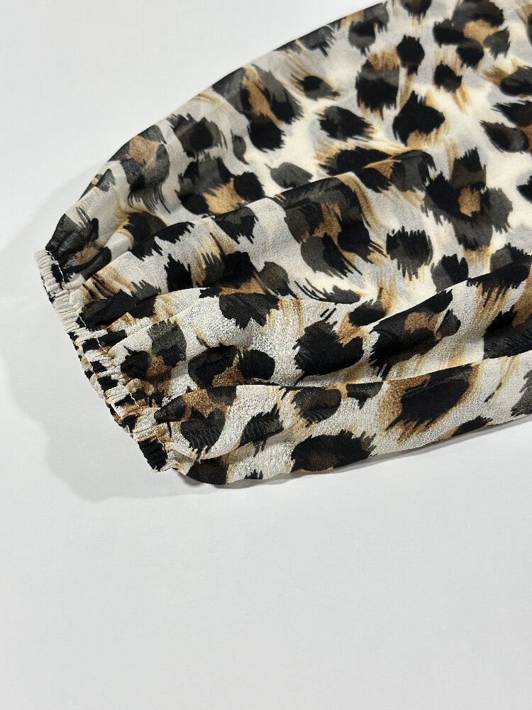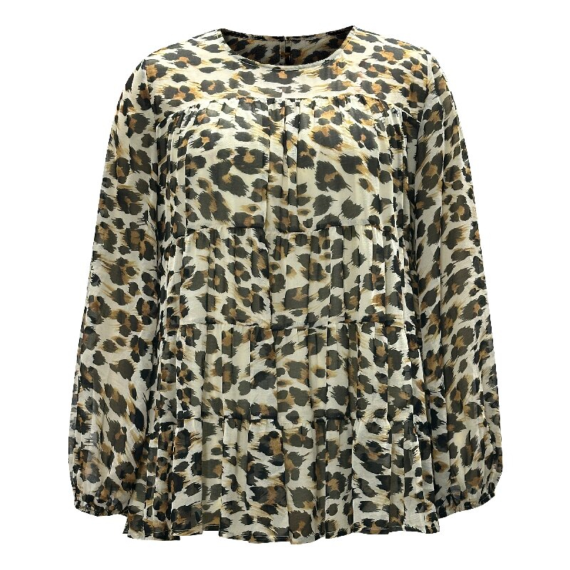 You are here: Home / Products / Woman / Blouse / Casual Leopard Shirt - Round Neck Lantern Long Sleeve Women's Blouse