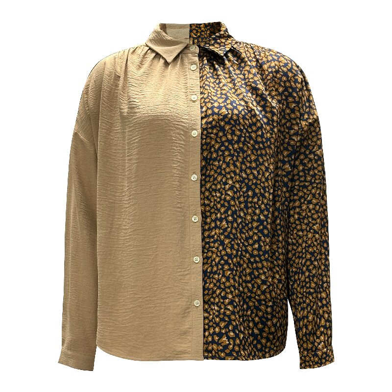 You are here: Home / Products / Woman / Blouse / Patchwork Button Down Shirt - Solid & Leopard Print Long Sleeve Chic Top