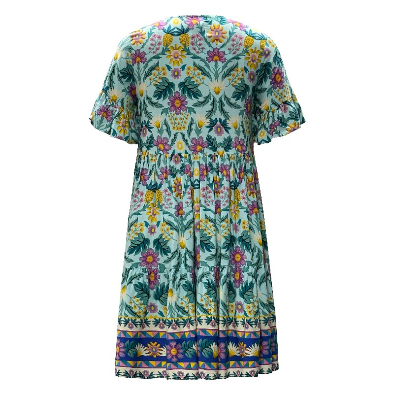 Printed Boho Beach Dress | Women's Round Neck Short Sleeve Loose Summer Resort Dress