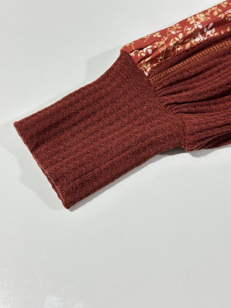 You are here: Home / Products / Woman / Tops / Printed Sleeve Solid Top | Women's V-Neck Long Sleeve Chic Casual Shirt