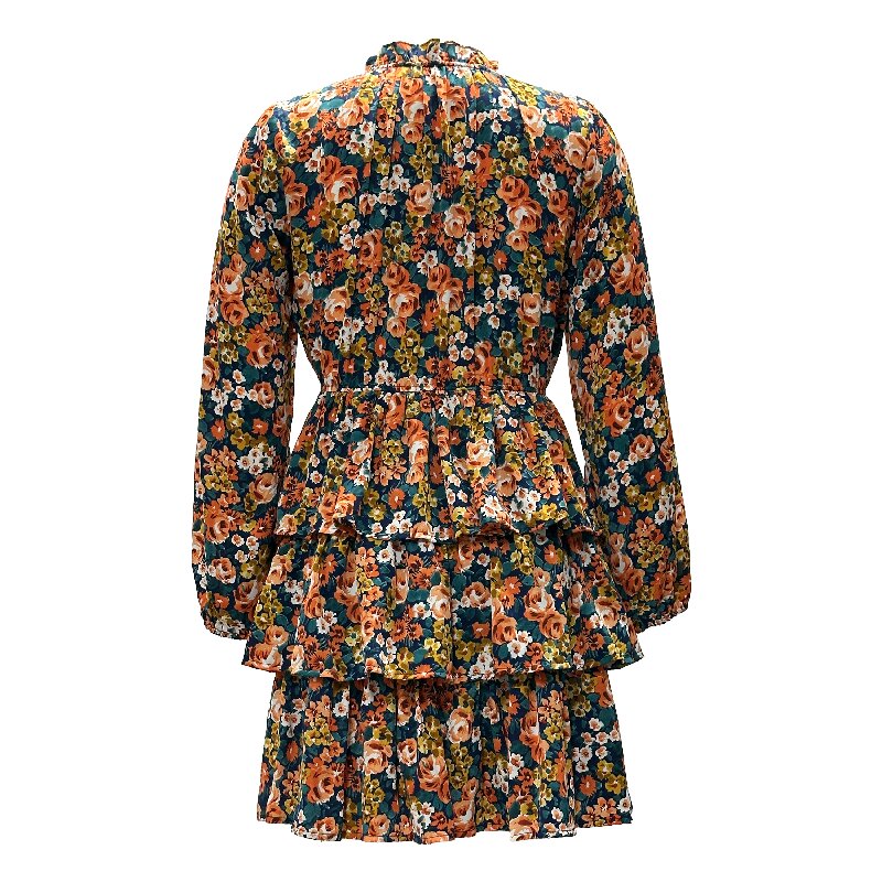 You are here: Home / Products / Woman / Dress / Printed Tiered Dress | Women's European Style Long Sleeve Waist-Cinching Dress