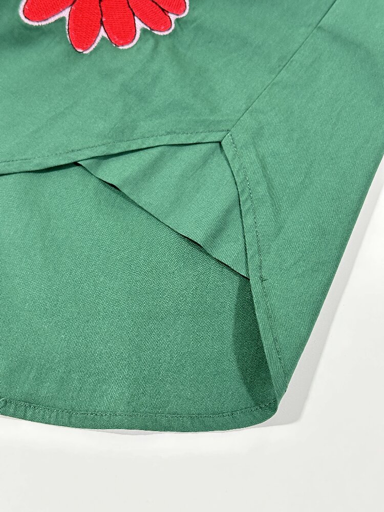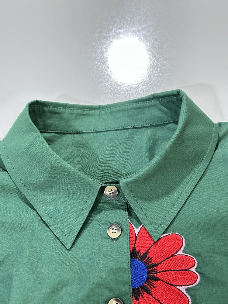 You are here: Home / Products / Woman / Tops / Red Floral Green Shirt | Women's Long Sleeve Cotton Casual Office Blouse