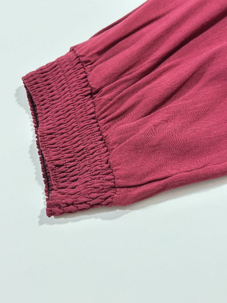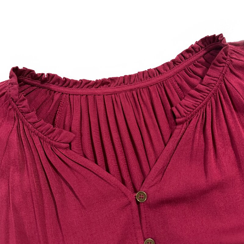 You are here: Home / Products / Woman / Blouse / Rose Red V-Neck Blouse | Women's Long Sleeve Loose Elastic Casual Daily Top