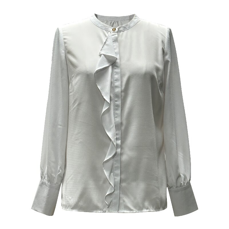 You are here: Home / Products / Woman / Blouse / Ruffle Detail White Shirt | Women's Lightweight Round Neck Long Sleeve Blouse