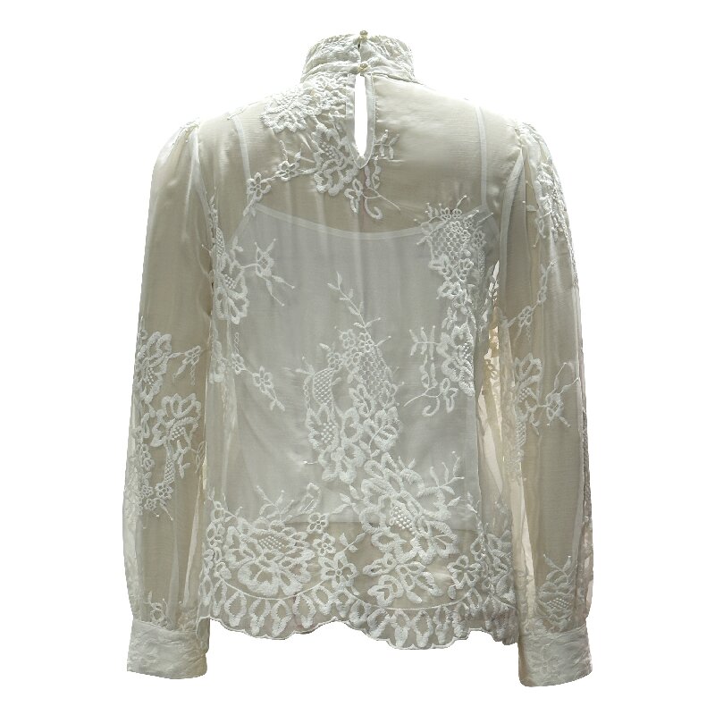 You are here: Home / Products / Woman / Blouse / Sheer Mesh Jacquard Shirt - Chic Daily Date Night Party Blouse