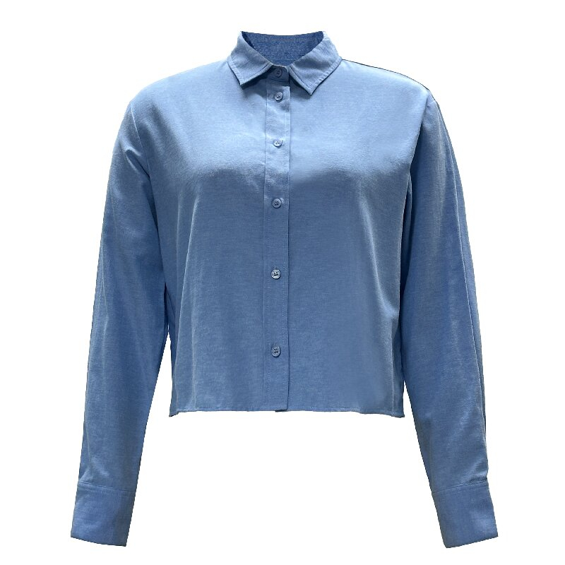 You are here: Home / Products / Woman / Tops / Solid Blue Button Up Shirt | Women's Collared Long Sleeve Office Top