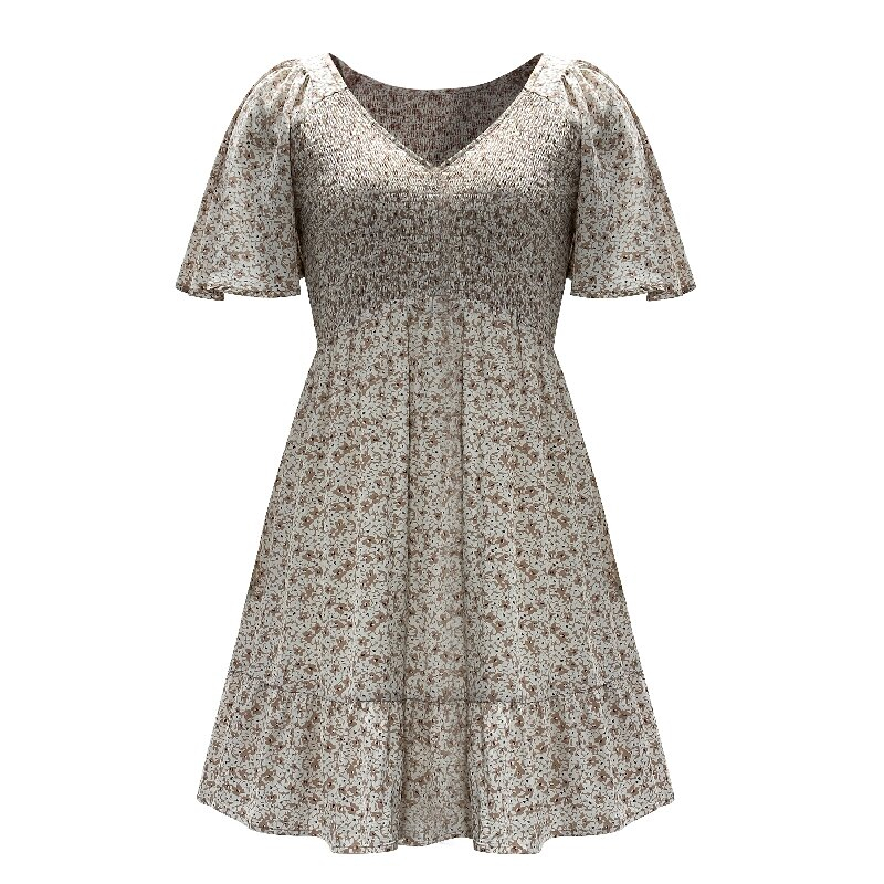 You are here: Home / Products / Woman / Dress / Lined V-Neck Printed Dress | Women's Short Sleeve Summer Daily Casual Dress