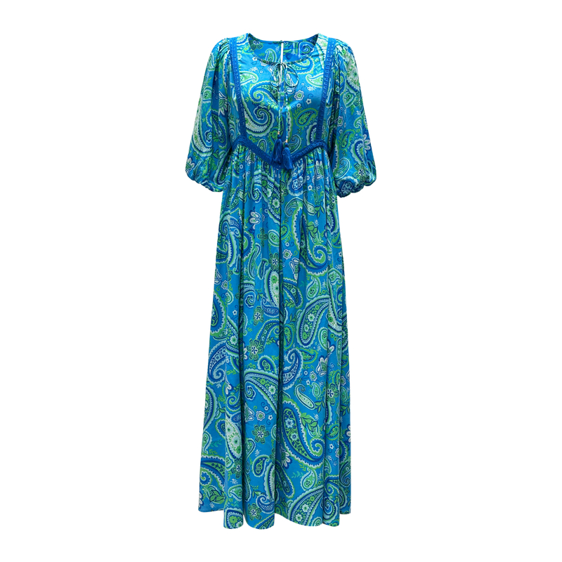 You are here: Home / Products / Woman / Dress / Women Fashion Summer Blue Printing Short Sleeve Vacation Resort Boho Maxi Dress